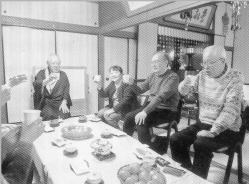法要のあと、ひとりひとり今年の抱負を発表。皆さん自身の健康、家族の平安が第一ですが、そのうえで、年齢を問わずこれからの人生何をなすべきか、真剣な思いを語り合いました。お菓子やお茶での懇談でしたが、元日の楽しい集いとなりました。